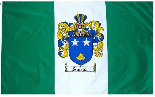 Aurilia Family Crest Flag / Coat of Arms Flag. You will receive a high quality 3' x 5' Polyester flag with two brass grommets. Proudly display your family heritage with this flag, or hang as a banner on a wall. Our flags make great gifts for birthdays, weddings, anniversaries, fathers day, mothers day, groomsmen gifts, and any other occasion