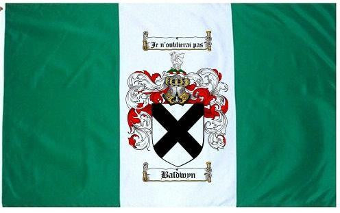 Baldwyn Family Crest Flag / Coat of Arms Flag. You will receive a high quality 3' x 5' Polyester flag with two brass grommets. Proudly display your family heritage with this flag, or hang as a banner on a wall. Our flags make great gifts for birthdays, weddings, anniversaries, fathers day, mothers day, groomsmen gifts, and any other occasion