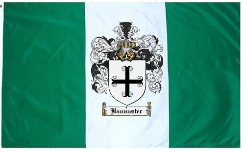 Bannaster Family Crest Flag / Coat of Arms Flag. You will receive a high quality 3' x 5' Polyester flag with two brass grommets. Proudly display your family heritage with this flag, or hang as a banner on a wall. Our flags make great gifts for birthdays, weddings, anniversaries, fathers day, mothers day, groomsmen gifts, and any other occasion