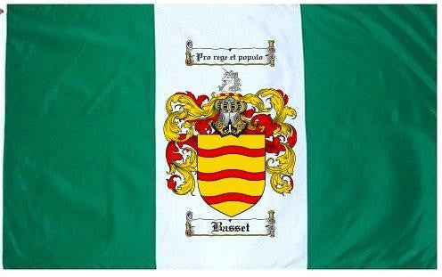 Basset Family Crest Flag / Coat of Arms Flag. You will receive a high quality 3' x 5' Polyester flag with two brass grommets. Proudly display your family heritage with this flag, or hang as a banner on a wall. Our flags make great gifts for birthdays, weddings, anniversaries, fathers day, mothers day, groomsmen gifts, and any other occasion