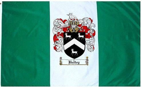 Battey Family Crest Flag / Coat of Arms Flag. You will receive a high quality 3' x 5' Polyester flag with two brass grommets. Proudly display your family heritage with this flag, or hang as a banner on a wall. Our flags make great gifts for birthdays, weddings, anniversaries, fathers day, mothers day, groomsmen gifts, and any other occasion