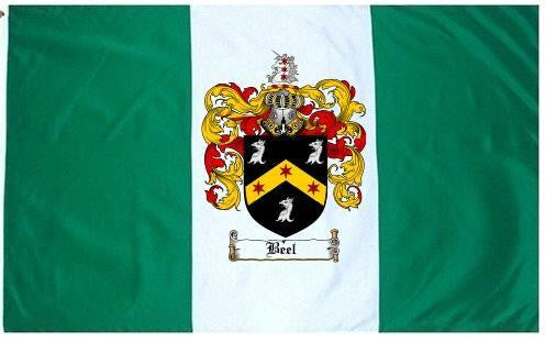 Beel Family Crest Flag / Coat of Arms Flag. You will receive a high quality 3' x 5' Polyester flag with two brass grommets. Proudly display your family heritage with this flag, or hang as a banner on a wall. Our flags make great gifts for birthdays, weddings, anniversaries, fathers day, mothers day, groomsmen gifts, and any other occasion