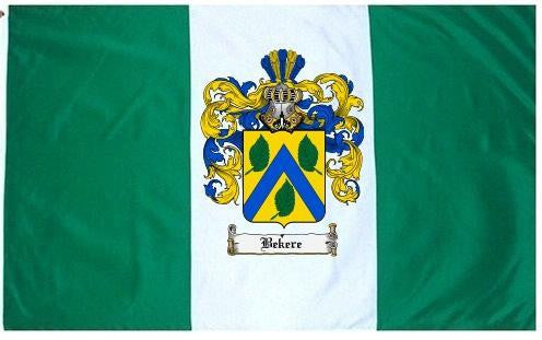 Bekere Family Crest Flag / Coat of Arms Flag. You will receive a high quality 3' x 5' Polyester flag with two brass grommets. Proudly display your family heritage with this flag, or hang as a banner on a wall. Our flags make great gifts for birthdays, weddings, anniversaries, fathers day, mothers day, groomsmen gifts, and any other occasion