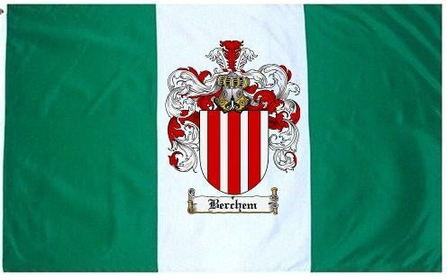 Berchem Family Crest Flag / Coat of Arms Flag. You will receive a high quality 3' x 5' Polyester flag with two brass grommets. Proudly display your family heritage with this flag, or hang as a banner on a wall. Our flags make great gifts for birthdays, weddings, anniversaries, fathers day, mothers day, groomsmen gifts, and any other occasion