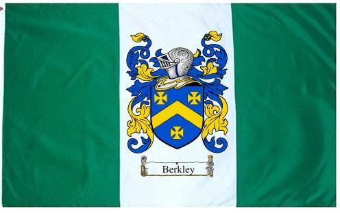 Berkley Family Crest Flag / Coat of Arms Flag. You will receive a high quality 3' x 5' Polyester flag with two brass grommets. Proudly display your family heritage with this flag, or hang as a banner on a wall. Our flags make great gifts for birthdays, weddings, anniversaries, fathers day, mothers day, groomsmen gifts, and any other occasion