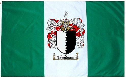 Berminean Family Crest Flag / Coat of Arms Flag. You will receive a high quality 3' x 5' Polyester flag with two brass grommets. Proudly display your family heritage with this flag, or hang as a banner on a wall. Our flags make great gifts for birthdays, weddings, anniversaries, fathers day, mothers day, groomsmen gifts, and any other occasion