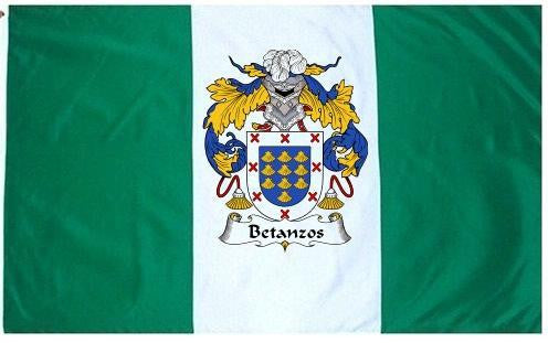 Betanzos Family Crest Flag / Coat of Arms Flag. You will receive a high quality 3' x 5' Polyester flag with two brass grommets. Proudly display your family heritage with this flag, or hang as a banner on a wall. Our flags make great gifts for birthdays, weddings, anniversaries, fathers day, mothers day, groomsmen gifts, and any other occasion