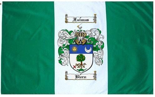 Biern Family Crest Flag / Coat of Arms Flag. You will receive a high quality 3' x 5' Polyester flag with two brass grommets. Proudly display your family heritage with this flag, or hang as a banner on a wall. Our flags make great gifts for birthdays, weddings, anniversaries, fathers day, mothers day, groomsmen gifts, and any other occasion