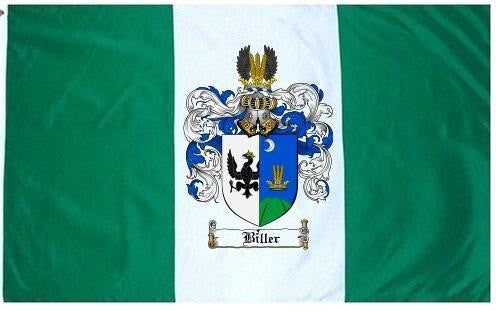 Biller Family Crest Flag / Coat of Arms Flag. You will receive a high quality 3' x 5' Polyester flag with two brass grommets. Proudly display your family heritage with this flag, or hang as a banner on a wall. Our flags make great gifts for birthdays, weddings, anniversaries, fathers day, mothers day, groomsmen gifts, and any other occasion