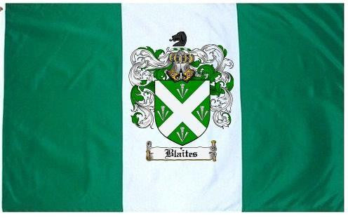 Blaites Family Crest Flag / Coat of Arms Flag. You will receive a high quality 3' x 5' Polyester flag with two brass grommets. Proudly display your family heritage with this flag, or hang as a banner on a wall. Our flags make great gifts for birthdays, weddings, anniversaries, fathers day, mothers day, groomsmen gifts, and any other occasion