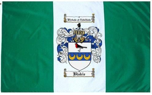 Blakie Family Crest Flag / Coat of Arms Flag. You will receive a high quality 3' x 5' Polyester flag with two brass grommets. Proudly display your family heritage with this flag, or hang as a banner on a wall. Our flags make great gifts for birthdays, weddings, anniversaries, fathers day, mothers day, groomsmen gifts, and any other occasion