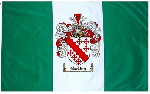 Bocking Family Crest Flag / Coat of Arms Flag. You will receive a high quality 3' x 5' Polyester flag with two brass grommets. Proudly display your family heritage with this flag, or hang as a banner on a wall. Our flags make great gifts for birthdays, weddings, anniversaries, fathers day, mothers day, groomsmen gifts, and any other occasion