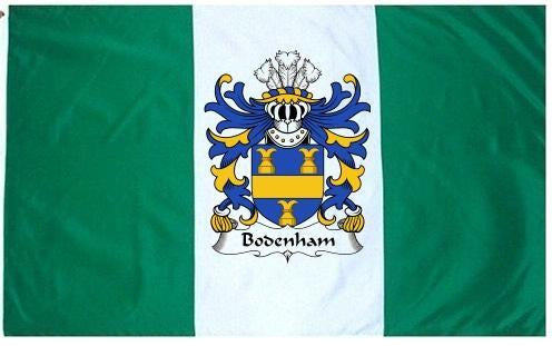 Bodenham Family Crest Flag / Coat of Arms Flag. You will receive a high quality 3' x 5' Polyester flag with two brass grommets. Proudly display your family heritage with this flag, or hang as a banner on a wall. Our flags make great gifts for birthdays, weddings, anniversaries, fathers day, mothers day, groomsmen gifts, and any other occasion