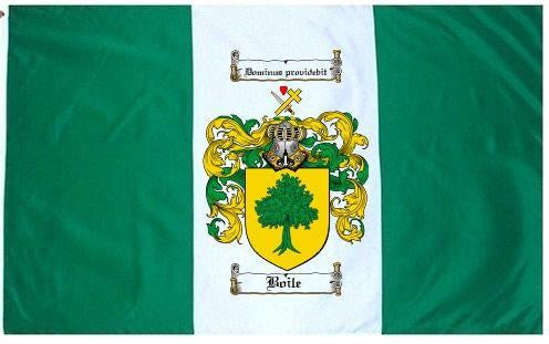 Boile Family Crest Flag / Coat of Arms Flag. You will receive a high quality 3' x 5' Polyester flag with two brass grommets. Proudly display your family heritage with this flag, or hang as a banner on a wall. Our flags make great gifts for birthdays, weddings, anniversaries, fathers day, mothers day, groomsmen gifts, and any other occasion