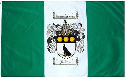Boltin Family Crest Flag / Coat of Arms Flag. You will receive a high quality 3' x 5' Polyester flag with two brass grommets. Proudly display your family heritage with this flag, or hang as a banner on a wall. Our flags make great gifts for birthdays, weddings, anniversaries, fathers day, mothers day, groomsmen gifts, and any other occasion