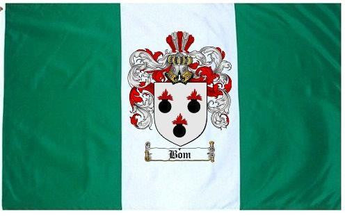 Bom Family Crest Flag / Coat of Arms Flag. You will receive a high quality 3' x 5' Polyester flag with two brass grommets. Proudly display your family heritage with this flag, or hang as a banner on a wall. Our flags make great gifts for birthdays, weddings, anniversaries, fathers day, mothers day, groomsmen gifts, and any other occasion