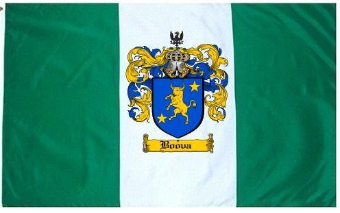 Boova Family Crest Flag / Coat of Arms Flag. You will receive a high quality 3' x 5' Polyester flag with two brass grommets. Proudly display your family heritage with this flag, or hang as a banner on a wall. Our flags make great gifts for birthdays, weddings, anniversaries, fathers day, mothers day, groomsmen gifts, and any other occasion