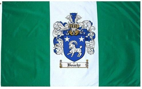 Bouche Family Crest Flag / Coat of Arms Flag. You will receive a high quality 3' x 5' Polyester flag with two brass grommets. Proudly display your family heritage with this flag, or hang as a banner on a wall. Our flags make great gifts for birthdays, weddings, anniversaries, fathers day, mothers day, groomsmen gifts, and any other occasion