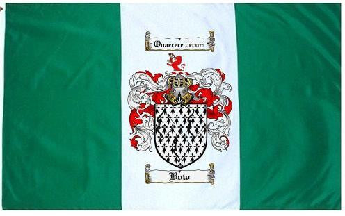 Bow Family Crest Flag / Coat of Arms Flag. You will receive a high quality 3' x 5' Polyester flag with two brass grommets. Proudly display your family heritage with this flag, or hang as a banner on a wall. Our flags make great gifts for birthdays, weddings, anniversaries, fathers day, mothers day, groomsmen gifts, and any other occasion