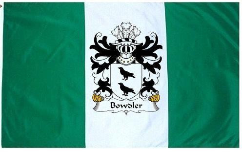 Bowdler Family Crest Flag / Coat of Arms Flag. You will receive a high quality 3' x 5' Polyester flag with two brass grommets. Proudly display your family heritage with this flag, or hang as a banner on a wall. Our flags make great gifts for birthdays, weddings, anniversaries, fathers day, mothers day, groomsmen gifts, and any other occasion
