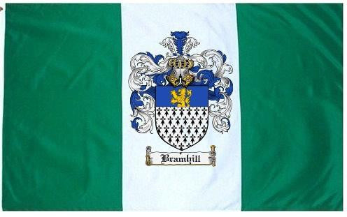 Bramhill Family Crest Flag / Coat of Arms Flag. You will receive a high quality 3' x 5' Polyester flag with two brass grommets. Proudly display your family heritage with this flag, or hang as a banner on a wall. Our flags make great gifts for birthdays, weddings, anniversaries, fathers day, mothers day, groomsmen gifts, and any other occasion