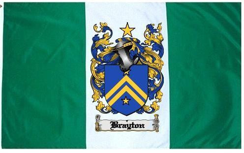 Brayton Family Crest Flag / Coat of Arms Flag. You will receive a high quality 3' x 5' Polyester flag with two brass grommets. Proudly display your family heritage with this flag, or hang as a banner on a wall. Our flags make great gifts for birthdays, weddings, anniversaries, fathers day, mothers day, groomsmen gifts, and any other occasion