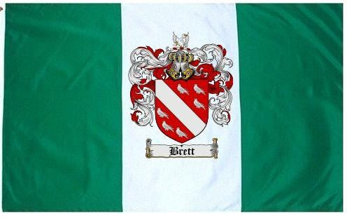 Brett Family Crest Flag / Coat of Arms Flag. You will receive a high quality 3' x 5' Polyester flag with two brass grommets. Proudly display your family heritage with this flag, or hang as a banner on a wall. Our flags make great gifts for birthdays, weddings, anniversaries, fathers day, mothers day, groomsmen gifts, and any other occasion