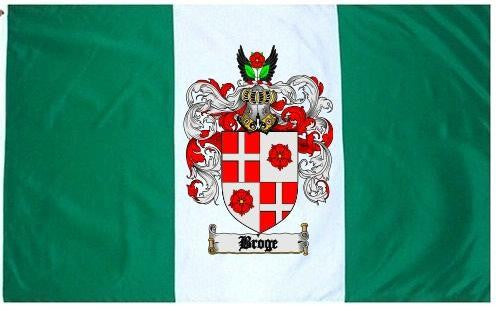 Broge Family Crest Flag / Coat of Arms Flag. You will receive a high quality 3' x 5' Polyester flag with two brass grommets. Proudly display your family heritage with this flag, or hang as a banner on a wall. Our flags make great gifts for birthdays, weddings, anniversaries, fathers day, mothers day, groomsmen gifts, and any other occasion