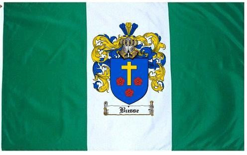 Busse Family Crest Flag / Coat of Arms Flag. You will receive a high quality 3' x 5' Polyester flag with two brass grommets. Proudly display your family heritage with this flag, or hang as a banner on a wall. Our flags make great gifts for birthdays, weddings, anniversaries, fathers day, mothers day, groomsmen gifts, and any other occasion