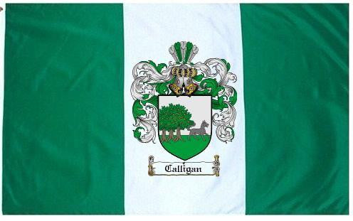 Calligan Family Crest Flag / Coat of Arms Flag. You will receive a high quality 3' x 5' Polyester flag with two brass grommets. Proudly display your family heritage with this flag, or hang as a banner on a wall. Our flags make great gifts for birthdays, weddings, anniversaries, fathers day, mothers day, groomsmen gifts, and any other occasion
