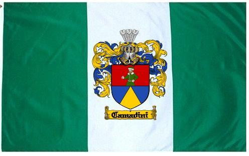Camadini Family Crest Flag / Coat of Arms Flag. You will receive a high quality 3' x 5' Polyester flag with two brass grommets. Proudly display your family heritage with this flag, or hang as a banner on a wall. Our flags make great gifts for birthdays, weddings, anniversaries, fathers day, mothers day, groomsmen gifts, and any other occasion