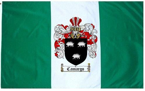 Camargo Family Crest Flag / Coat of Arms Flag. You will receive a high quality 3' x 5' Polyester flag with two brass grommets. Proudly display your family heritage with this flag, or hang as a banner on a wall. Our flags make great gifts for birthdays, weddings, anniversaries, fathers day, mothers day, groomsmen gifts, and any other occasion