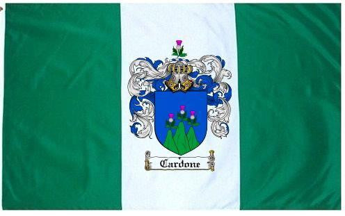 Cardone Family Crest Flag / Coat of Arms Flag. You will receive a high quality 3' x 5' Polyester flag with two brass grommets. Proudly display your family heritage with this flag, or hang as a banner on a wall. Our flags make great gifts for birthdays, weddings, anniversaries, fathers day, mothers day, groomsmen gifts, and any other occasion