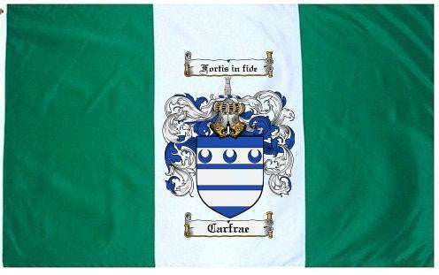 Carfrae Family Crest Flag / Coat of Arms Flag. You will receive a high quality 3' x 5' Polyester flag with two brass grommets. Proudly display your family heritage with this flag, or hang as a banner on a wall. Our flags make great gifts for birthdays, weddings, anniversaries, fathers day, mothers day, groomsmen gifts, and any other occasion