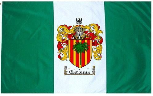 Caronna Family Crest Flag / Coat of Arms Flag. You will receive a high quality 3' x 5' Polyester flag with two brass grommets. Proudly display your family heritage with this flag, or hang as a banner on a wall. Our flags make great gifts for birthdays, weddings, anniversaries, fathers day, mothers day, groomsmen gifts, and any other occasion