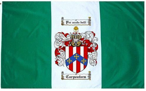 Carpenters Family Crest Flag / Coat of Arms Flag. You will receive a high quality 3' x 5' Polyester flag with two brass grommets. Proudly display your family heritage with this flag, or hang as a banner on a wall. Our flags make great gifts for birthdays, weddings, anniversaries, fathers day, mothers day, groomsmen gifts, and any other occasion