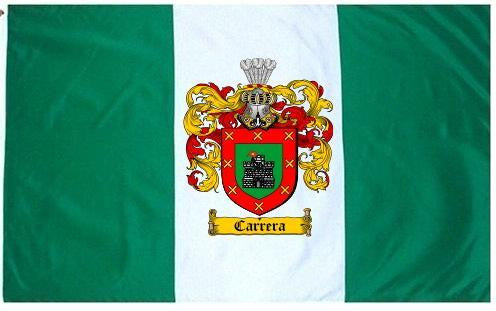 Carrera Family Crest Flag / Coat of Arms Flag. You will receive a high quality 3' x 5' Polyester flag with two brass grommets. Proudly display your family heritage with this flag, or hang as a banner on a wall. Our flags make great gifts for birthdays, weddings, anniversaries, fathers day, mothers day, groomsmen gifts, and any other occasion