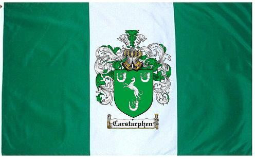 Carstarphen Family Crest Flag / Coat of Arms Flag. You will receive a high quality 3' x 5' Polyester flag with two brass grommets. Proudly display your family heritage with this flag, or hang as a banner on a wall. Our flags make great gifts for birthdays, weddings, anniversaries, fathers day, mothers day, groomsmen gifts, and any other occasion