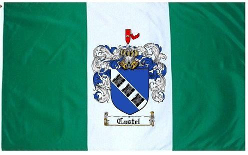 Castel Family Crest Flag / Coat of Arms Flag. You will receive a high quality 3' x 5' Polyester flag with two brass grommets. Proudly display your family heritage with this flag, or hang as a banner on a wall. Our flags make great gifts for birthdays, weddings, anniversaries, fathers day, mothers day, groomsmen gifts, and any other occasion