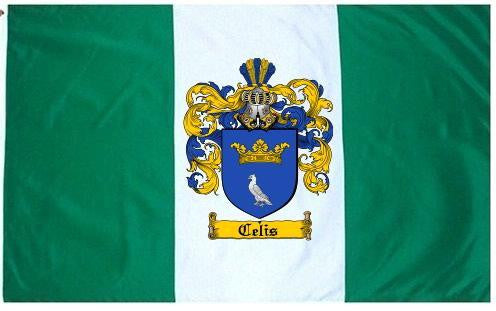 Celis Family Crest Flag / Coat of Arms Flag. You will receive a high quality 3' x 5' Polyester flag with two brass grommets. Proudly display your family heritage with this flag, or hang as a banner on a wall. Our flags make great gifts for birthdays, weddings, anniversaries, fathers day, mothers day, groomsmen gifts, and any other occasion