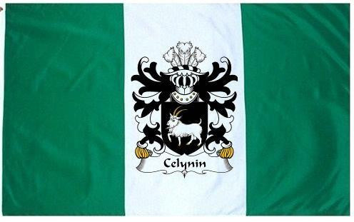 Celynin Family Crest Flag / Coat of Arms Flag. You will receive a high quality 3' x 5' Polyester flag with two brass grommets. Proudly display your family heritage with this flag, or hang as a banner on a wall. Our flags make great gifts for birthdays, weddings, anniversaries, fathers day, mothers day, groomsmen gifts, and any other occasion