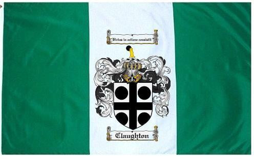 Claughton Family Crest Flag / Coat of Arms Flag. You will receive a high quality 3' x 5' Polyester flag with two brass grommets. Proudly display your family heritage with this flag, or hang as a banner on a wall. Our flags make great gifts for birthdays, weddings, anniversaries, fathers day, mothers day, groomsmen gifts, and any other occasion