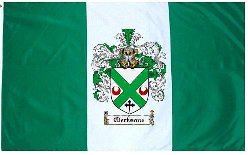 Clerksone Family Crest Flag / Coat of Arms Flag. You will receive a high quality 3' x 5' Polyester flag with two brass grommets. Proudly display your family heritage with this flag, or hang as a banner on a wall. Our flags make great gifts for birthdays, weddings, anniversaries, fathers day, mothers day, groomsmen gifts, and any other occasion