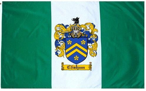 Clisham Family Crest Flag / Coat of Arms Flag. You will receive a high quality 3' x 5' Polyester flag with two brass grommets. Proudly display your family heritage with this flag, or hang as a banner on a wall. Our flags make great gifts for birthdays, weddings, anniversaries, fathers day, mothers day, groomsmen gifts, and any other occasion