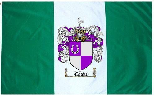 Cooke Family Crest Flag / Coat of Arms Flag. You will receive a high quality 3' x 5' Polyester flag with two brass grommets. Proudly display your family heritage with this flag, or hang as a banner on a wall. Our flags make great gifts for birthdays, weddings, anniversaries, fathers day, mothers day, groomsmen gifts, and any other occasion