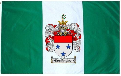 Cordingley Family Crest Flag / Coat of Arms Flag. You will receive a high quality 3' x 5' Polyester flag with two brass grommets. Proudly display your family heritage with this flag, or hang as a banner on a wall. Our flags make great gifts for birthdays, weddings, anniversaries, fathers day, mothers day, groomsmen gifts, and any other occasion