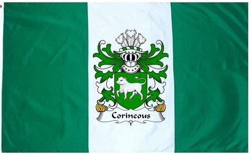 Corineous Family Crest Flag / Coat of Arms Flag. You will receive a high quality 3' x 5' Polyester flag with two brass grommets. Proudly display your family heritage with this flag, or hang as a banner on a wall. Our flags make great gifts for birthdays, weddings, anniversaries, fathers day, mothers day, groomsmen gifts, and any other occasion