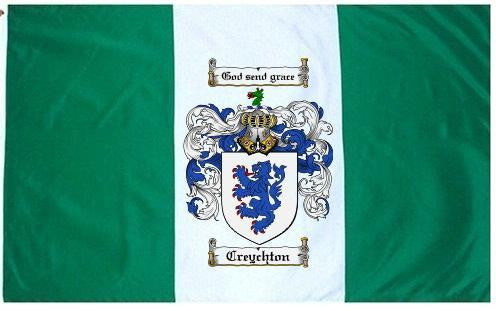 Creychton Family Crest Flag / Coat of Arms Flag. You will receive a high quality 3' x 5' Polyester flag with two brass grommets. Proudly display your family heritage with this flag, or hang as a banner on a wall. Our flags make great gifts for birthdays, weddings, anniversaries, fathers day, mothers day, groomsmen gifts, and any other occasion