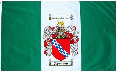 Croader Family Crest Flag / Coat of Arms Flag. You will receive a high quality 3' x 5' Polyester flag with two brass grommets. Proudly display your family heritage with this flag, or hang as a banner on a wall. Our flags make great gifts for birthdays, weddings, anniversaries, fathers day, mothers day, groomsmen gifts, and any other occasion