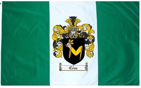 Croc Family Crest Flag / Coat of Arms Flag. You will receive a high quality 3' x 5' Polyester flag with two brass grommets. Proudly display your family heritage with this flag, or hang as a banner on a wall. Our flags make great gifts for birthdays, weddings, anniversaries, fathers day, mothers day, groomsmen gifts, and any other occasion